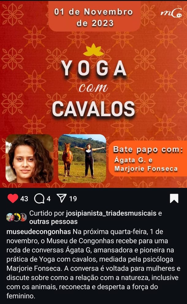 Além da prática clínica, trabalho com uma metodologia Yocca, pioneira que integra Yoga na presença dos Cavalos